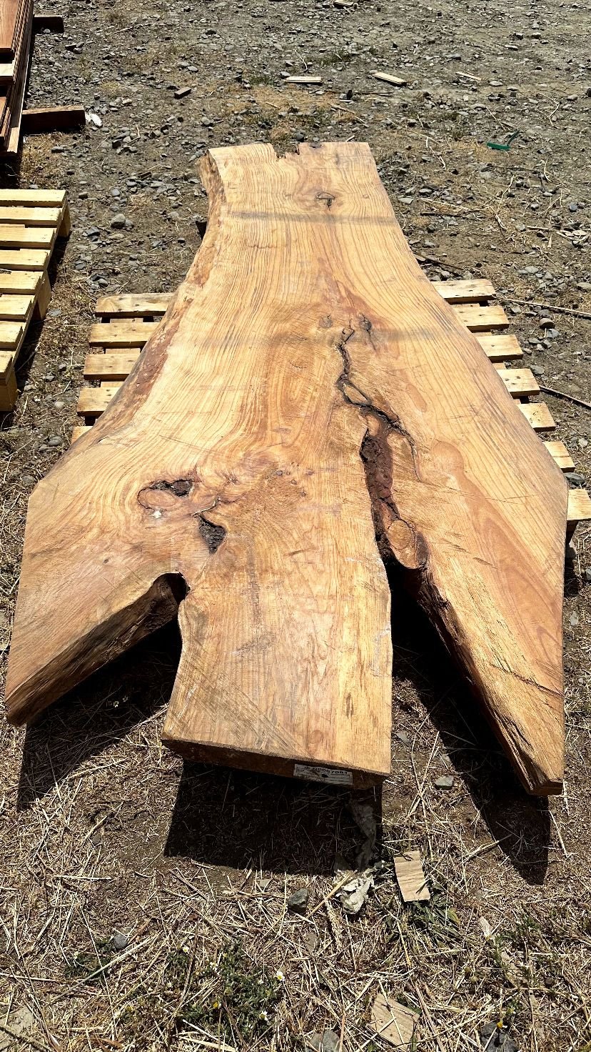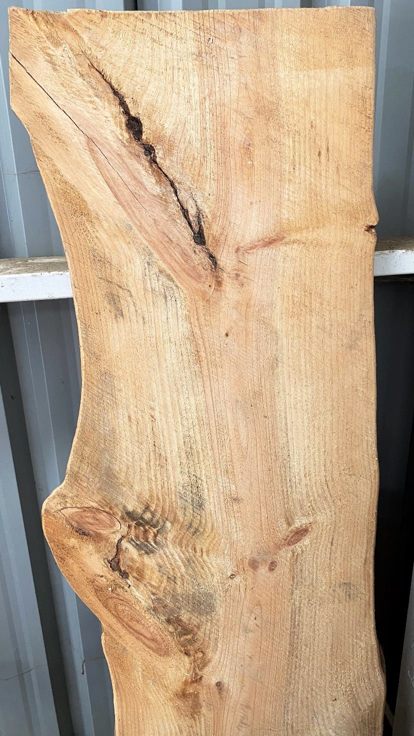 Descripción: Slab rústico de madera de pino corte tangencial canto vivo.